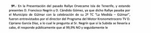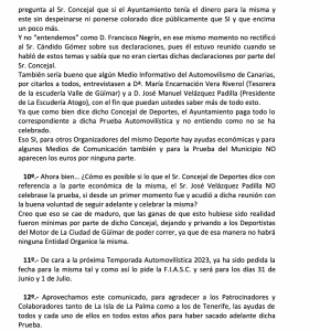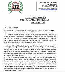 El Comité Organizador de la Subida al Mirador de Güímar Isla de Tenerife ha emitido un comunicado para aclarar los motivos de la suspensión de la 49 edición.
