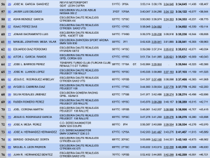 Tercero era Óscar V. Gutiérrez (Demon Car CM 1000), a 4.141 del segundo lugar y a 13.888 de la cabeza.