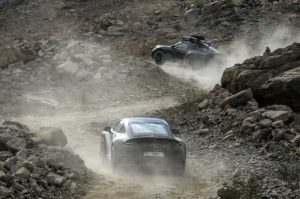 El embajador de Porsche Jörg Bergmeister también pudo probar el 911 Dakar en la fase de desarrollo del coche y se sorprendió de la dinámica de este deportivo inusualmente alto, tanto en superficies deslizantes como en asfalto: “No creía que un vehículo con tanta distancia al suelo y neumáticos todoterreno pudiera comportarse como un Porsche 911 sobre el asfalto”, afirma. El piloto de desarrollo Lars Kern también se sorprendió durante las últimas pruebas de puesta a punto: “Al principio no me atreví a llevar el coche al límite, pero estoy muy satisfecho con su comportamiento en superficies deslizantes. Incluso el ABS está optimizado para frenar en tierra. Es increíble la tracción que ofrecen los neumáticos off road. Es una auténtica maravilla para conducir”.