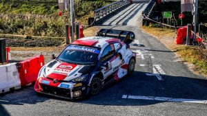 Un podio en casa sería el resultado soñado para Takamoto Katsuta, también con un Toyota. Al encontrar el TC9 inesperadamente resbaladizo, terminó el bucle a 18,7 segundos de Tänak y sigue preparado para atacar si hay algún problema más adelante.