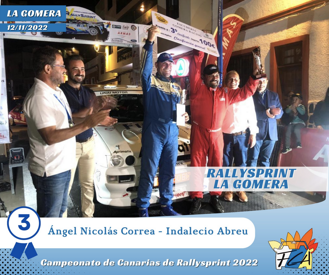 Ángel Nicolás Correa e Indalecio Manuel Abreu se desplazaron hasta La Gomera para competir en el Rallysprint de la isla, logrando un tercer puesto absoluto en el Ford Escort Cosworth.