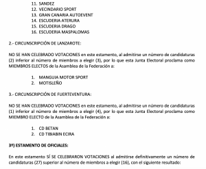 La Federación Canarias de Automovilismo procede al Acuerdo de Proclamación Provisisonal de Candidaturas Electas FALP (Federación de Automovilismo de Las Palmas).
