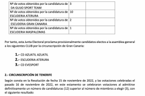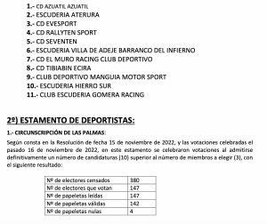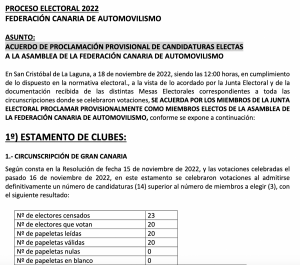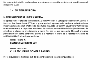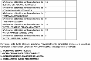 Publicamos el acuerdo de la proclamación Provisisonal de Candidaturas Electas a la Federación Canaria de Automovilismo (FCA).
