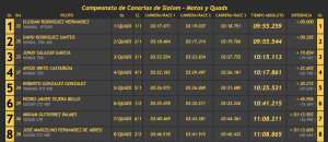 Yeray marcó tres cronos casi idénticos, 3:14.033, 3:15.423, 3:15.927, lo que le valió para superar en 3.002 a Carlos Quintero (La Base SX-01) que, aunque tuvo dos mejores cronos que el ganador, la pérdida de muchos segundos en la segunda pasada le ‘condenó’ al segundo lugar. Sus cronos fueron de 3:14.022, 3:18.789 y 3:15.574. José Manuel González (Ya Car 2018) fue tercero, algo más alejado de los anteriores.