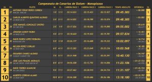 Yeray marcó tres cronos casi idénticos, 3:14.033, 3:15.423, 3:15.927, lo que le valió para superar en 3.002 a Carlos Quintero (La Base SX-01) que, aunque tuvo dos mejores cronos que el ganador, la pérdida de muchos segundos en la segunda pasada le ‘condenó’ al segundo lugar. Sus cronos fueron de 3:14.022, 3:18.789 y 3:15.574. José Manuel González (Ya Car 2018) fue tercero, algo más alejado de los anteriores.