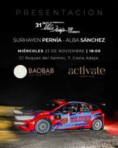 Este miércoles, 23 de noviembre, a las 18:00 horas, el equipo de Terra Training (Surhayen Pernía y Alba Sánchez) realizará una presentación previa a su participación en la última cita del #SCER22. El acto tendrá lugar en el Activate Sport Club del Baobab Suites en C/ Roques del Salmor 7 Costa Adeje.