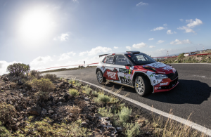 Mejoran un puesto y se colocan séptimos los tinerfeños Sergio Fuentes y Néstor Gómez (Citroën C3 Rally2), seguidos a 7.7 de Pablo Diez y Axel Coronado (Skoda Fabia Rally2 Evo) octavos.
