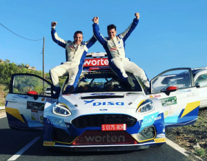 Juan Carlos Quintana y Yeray Mujica celebran su título del CERT 2022 ganando el Rally de La Oliva