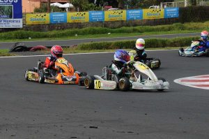 Once giros completos por carrera dieron los pilotos de la Categoría Cadete. En esta, Raúl González, Adrián Cruz y Jorge Pérez, todos con CRG Black Mirror/Rotax, ocuparon las tres primeras posiciones y por ese orden en ambas carreras, sumando un total de 90, 80 y 72 puntos respectivamente.