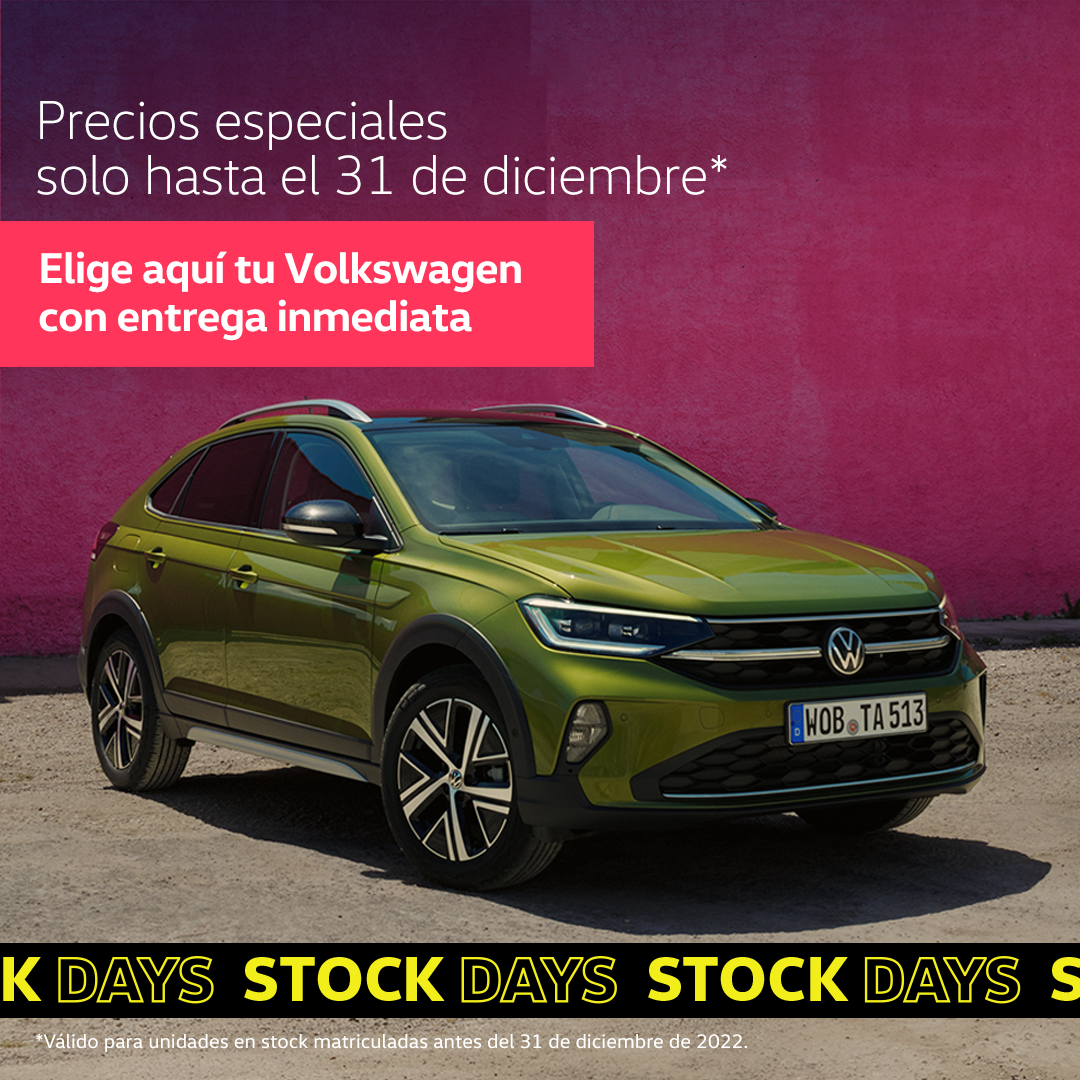 Volkswagen quiere poner el broche de oro al 2022 y hacer que sus clientes disfruten estas fechas tan especiales a los mandos de uno de los vehículos de su gama. Durante los Stock Days, modelos como el reconocido SUV Volkswagen Tiguan, están disponibles con hasta 7.500€ de descuento. Además, en la familia todocamino, el urbano Volkswagen T-Roc y el polifacético Volkswagen T-Cross presentan descuentos de 2.700€ y 2.200€ respectivamente. Por otra parte, una de las grandes incorporaciones a los Stock Days de Volkswagen, es el nuevo Taigo, inconfundible por su aspecto deportivo y cautivador, está disponible con hasta 3.000€ de descuento.
