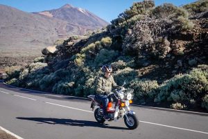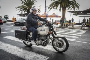 Los seis pilotos inscritos en la modalidad de Motos tomaron la salida y todos acabaron, pues ninguno de ellos se amilanó ante las duras condiciones que tuvieron que afrontar en la primera etapa, a cuya meta, situada en la calle Grande, en Adeje, llegaron empapados. La organización del Club Deportivo Motor Canario preparó un road book adaptado a las necesidades de los motoristas, que incluía 9 TR, tres el primer día y seis el segundo, y tras los cuales, Daniele Papi (BMW R100 RT) alcanzó la meta final instalada en el Hotel Barceló Santiago como vencedor. Lo hizo con 116 puntos en su casillero y una diferencia de seis con Iván Soto, segundo con una Suzuki GS 550 T. A sólo dos puntos de este se colocó un sorprendente Fernando Jiménez que, con una pequeña, pero “valiente” Yamaha Chappy LB80 II, de sólo 72 cc, fue capaz de alcanzar la tercera plaza después de subir al Teide por Chío y bajar por Vilaflor, entre otras peripecias.