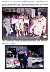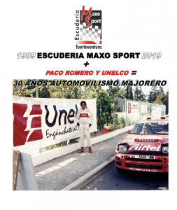 La escudería Maxo Sport, con Miguel Ángel Guerra al frente, nos recuerda el homenaje que se le realizó en 1989 a Paco Romero y a la empresa que representaba, Unelco, por lo mucho que hicieron y compitieron en la isla de Fuerteventura.