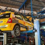 El piloto lanzaroteño Rayco Rodríguez pone a punto su Renault Clio Sport de cara a la última cita del año, el Rally Isla de Lanzarote.
