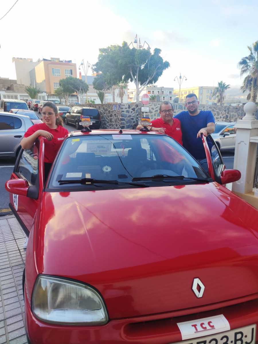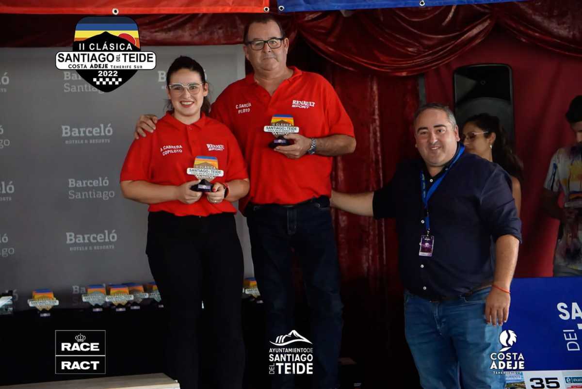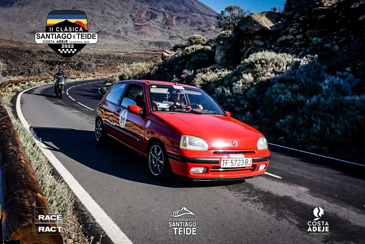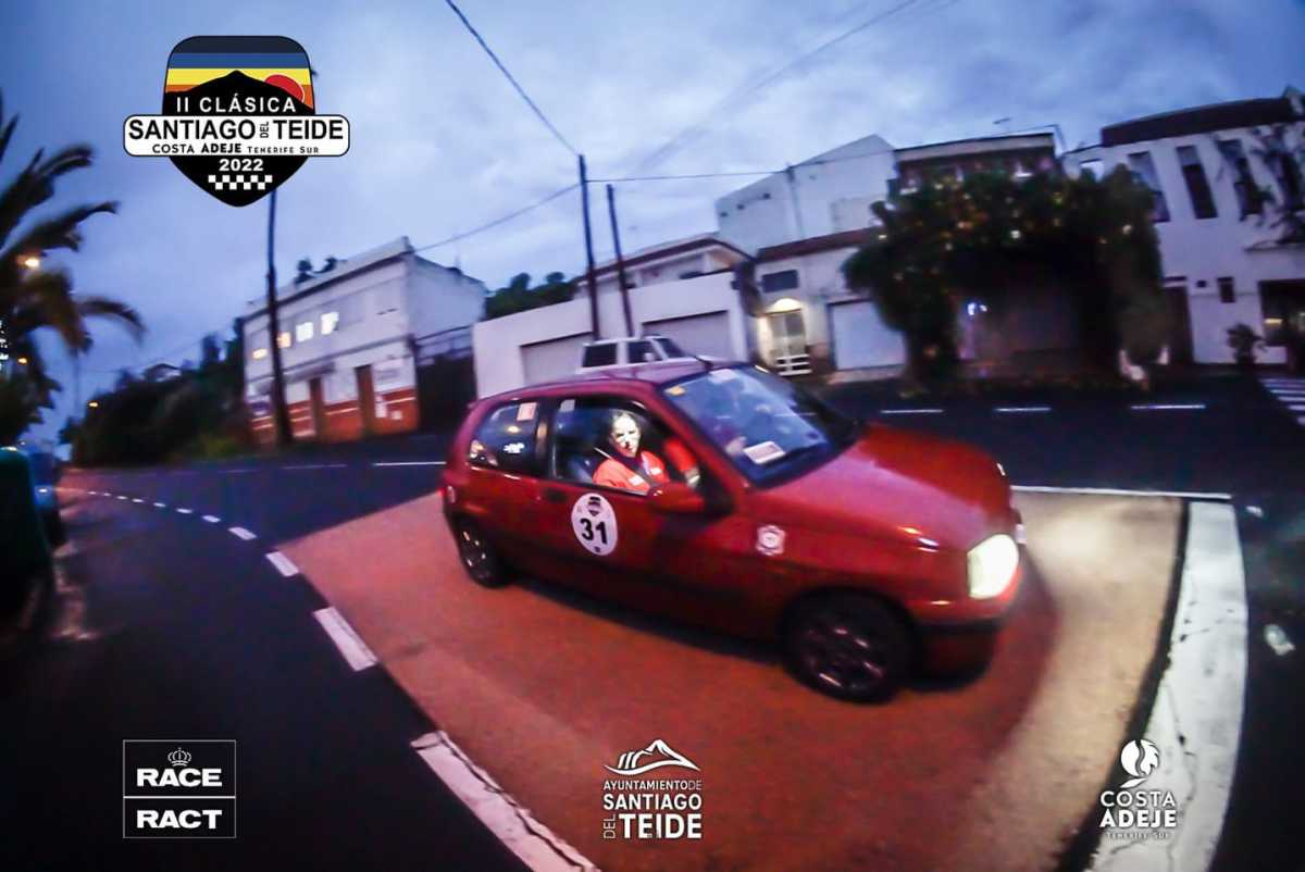 Cristo Manuel García y Attenery Cabrera compitieron con el Renault Clio en la Clásica Santiago del Teide, quedando 23° de la general, 3° de la categoría iniciación y 5° de bociclometro.