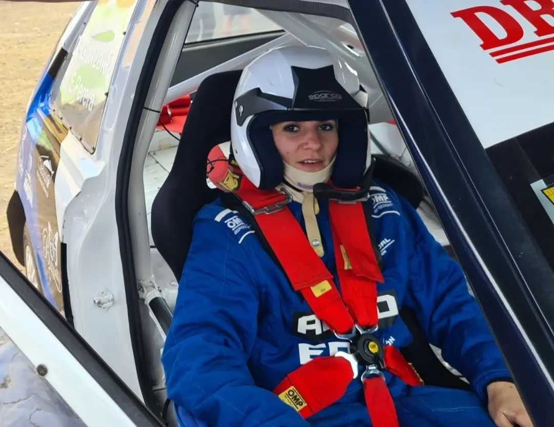 La joven copiloto palmera Eliana Perera celebra su subcampeonato en el año de su debut en la competición.
