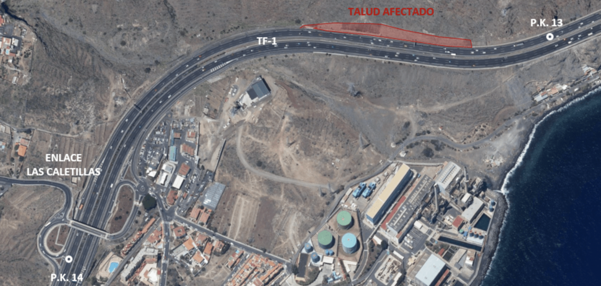 El Cabildo de Tenerife, a través del área de Carreteras, pone en marcha unas obras de emergencia en la carretera de interés regional TF-1 con el objetivo de sanear un talud que se ubica en la curva previa al enlace de Las Caletillas, en sentido sur. Durante las horas de trabajo, será necesario proceder al corte de algunos tramos de la vía.