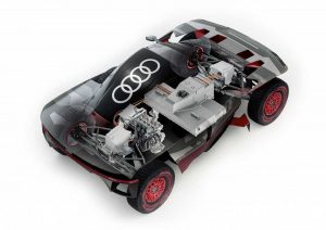 Las tres escuadras de Audi Sport competirán con una evolución significativamente mejorada del Audi RS Q e-tron. Está homologado en la categoría T1-U, que lleva allanando el camino hacia un futuro de bajas emisiones en los rallies cross-country desde 2022. La tracción de los ejes delanteros y traseros es eléctrica, y los motores eléctricos obtienen su energía de una batería de alto voltaje. Un sistema de control actualizado optimiza el equilibrio energético de los distintos componentes. Un convertidor de energía de alta eficiencia compuesto por un motor turboalimentado de cuatro cilindros y una unidad motor-generador (MGU), que funciona en la zona óptima de rendimiento y carga la batería, procesa por primera vez combustible renovable (reFuel).