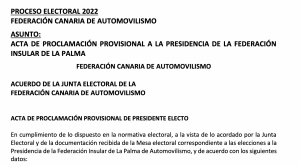 Publicamos el acta emitida por la junta Electora de la Federación Canaria de Automovilismo de la proclamación del presidente de la FIALP.