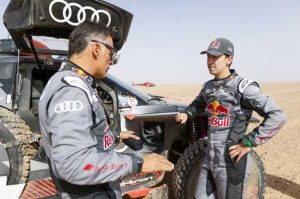 Para Lucas, la evolución del Audi RS Q e-tron ha sido muy positiva y por ello afirma que “el coche se siente muy bien en las zonas de arena y sinuosas”. En este sentido, advierte que la tercera especial, con un recorrido de montaña estrecho, va a ser complicado para el paso de coches anchos. Adelantar a otros vehículos será muy difícil, y por ende se reducirá mucho la visibilidad debido al polvo que levantarán. Además, en este tramo pedregoso existe un alto riesgo de pinchazo.