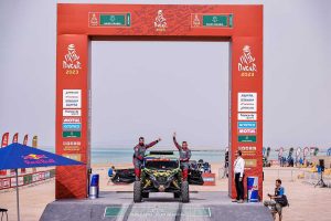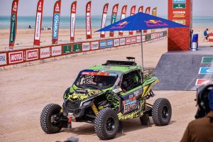 La especial era corta y sin complicaciones, un bucle con salida y llegada en el Sea Camp, el enorme vivac a orillas del Mar Rojo en el que la caravana del Dakar permanecerá hasta la salida de la segunda etapa. El terreno era llano, con pistas de tierra y algunos saltos. Un escenario ideal para reencontrarse con la conducción de una tipología de vehículo que hacía casi cuatro años que Font no pilotaba (desde el Dakar 2019), y también para adaptarse al trabajo en la cabina con su nuevo copiloto, el oscense Themis López.