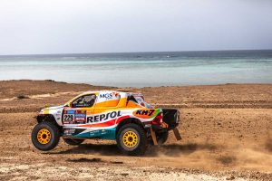 El rally Dakar 2023 ha arrancado oficialmente para Isidre Esteve, su copiloto, Txema Villalobos, y todos los integrantes del Repsol Toyota Rally Team en forma de breve prólogo de 13 km carente de dificultades. El piloto español ha concluido este trámite inicial con un registro de 8’49», el 28º de la categoría T1 y 29º de la general, lo que le garantiza una buena posición en el orden de salida de la primera especial de la competición, un bucle con salida y llegada en el Sea Camp, en Arabia Saudí, de 367 km contra el cronómetro.