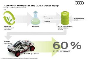 - La unidad TFSI de combustión de ese convertidor de energía se alimenta de reFuel con un 80% de componentes sostenibles, elaborado a partir de residuos y sin usar productos alimenticios. Gracias a ello, las emisiones del Audi RS Q e-tron E2 se reducen en un 60% respecto a las del vehículo del año pasado.