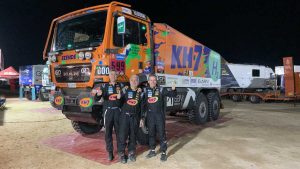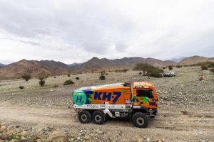 El KH-7 Epsilon Team completó la durísima segunda etapa del Dakar, trazada entre el Sea Camp y Al-Ula, tras doblegar los primeros desafíos técnicos de la semana, que llegaron en forma de una avería en el embrague y un pinchazo. Jordi Juvanteny, José Luis Criado y Jordi Ballbé llegaron al campamento a medianoche tras completar los 590 kilómetros del día utilizando a pleno rendimiento el motor de su MAN, que se alimenta de una combinación de gasóleo convencional e hidrógeno.