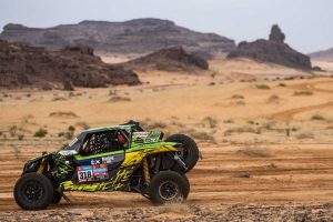 La lluvia ha sido una dificultad añadida para Joan Font y Themis López en la tercera etapa del Dakar, entre Al-Ula y Ha’il. Los del FN Speed Team han sabido sobreponerse a unas condiciones muy duras para culminar con buen ritmo la especial, acortada de los 447 kilómetros previstos hasta los 335. Han empleado 4 horas y media en completarla, en la 28ª posición de la categoría T3 (prototipos ligeros), a una hora del vencedor del día. Muchas horas de pilotaje, pero… ¡la mitad de las que necesitaron el lunes (9 horas) para completar la segunda etapa!