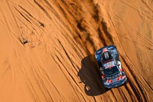 Carlos Sainz y Lucas Cruz (Audi RS Q e-tron) han realizado una buena actuación al final de la etapa del Rally Dakar, con un desfase especial de 373 kilómetros. Los pilotos españoles han finalizado segundos en esta jornada en la que no han tenido el más mínimo problema, si bien el desgaste físico ha sido importante debido a la dureza de las pistas de la etapa. Con esta segunda posición los pilotos españoles siguen en el cuarto puesto de la general, pero muy cerca ya de puestos de podio.