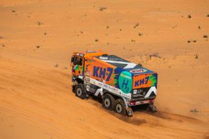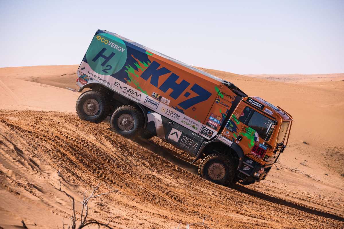 El KH-7 Epsilon Team ya tiene en el bolsillo otra especial complicada de este Dakar 2023, y lo vuelve a hacer sin mácula. El camión inscrito en la Challenge New Energy y único vehículo de la carrera que compite impulsado con hidrógeno, ha completado los 374 km cronometrados del segundo bucle con salida y llegada en Ha’il en 9 horas 44 minutos y 22 segundos, un tiempo que los habría situado en 28ª plaza absoluta de competir en la categoría T5.