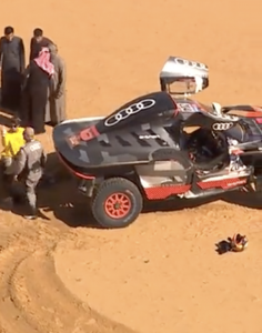 Peterhansel, que era segundo en la general del raid, estrelló su Audi y su copiloto, Edouard Boulanger tuvo que ser atendido por el equipo médico del rally, informó la organización. Presentaba dolor de espalda y fue evacuado a un hospital para pasar exámenes adicionales.