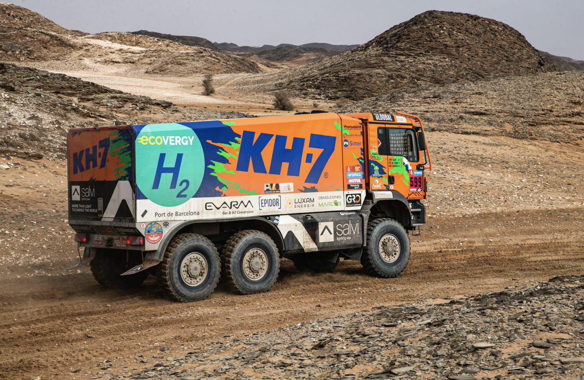 El KH-7 Epsilon Team ha superado una problemática jornada para finalizar el primer segmento de la etapa maratón del Dakar 2023, entre Riad y Al Duwadimi, de 333 km cronometrados. El equipo español, participante en la nueva división Challenge New Energy, se ha dejado una hora y cuarto en pista como consecuencia de la rotura de la cabeza de un amortiguador de la rueda delantera derecha, y ha debido aminorar el ritmo para completar los 123 kilómetros restantes de especial.