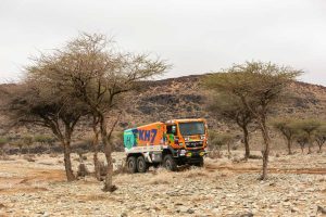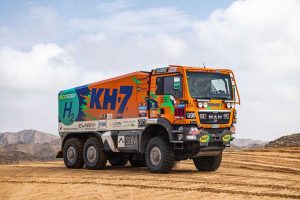 El KH-7 Epsilon Team ha completado con éxito la segunda parte de la etapa maratón y ya viaja de regreso a Riad, donde mañana disfrutará de una merecida jornada de descanso. El conjunto español ha invertido 8 horas, un minuto y 39 segundos para cubrir los 346 kilómetros cronometrados del día, cuyas mayores dificultades han sido de navegación, pero que han solventado sin inconvenientes técnicos en su MAN 6×6 impulsado por una mecánica híbrida de gasóleo e hidrógeno.