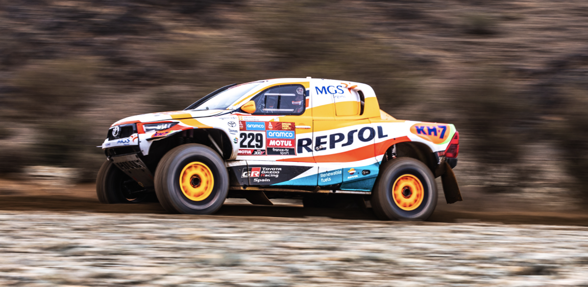 Isidre Esteve y Txema Villalobos han cerrado la primera semana del Dakar 2023 superando la etapa más difícil para ellos en lo que llevamos de carrera. La tripulación española ha perdido diez minutos al quedarse atascada en un cordón de dunas, y a 140 km del final han roto un amortiguador de la rueda trasera izquierda y han percibido daños en la doble unidad de la delantera izquierda, lo que les ha obligado a aminorar el ritmo hasta el final de la especial. A pesar de ello, los integrantes del Repsol Toyota Rally Team llegan a la jornada de descanso de Riad dentro del top 30 de la clasificación (28ª plaza en la general y 26ª en la división T1).