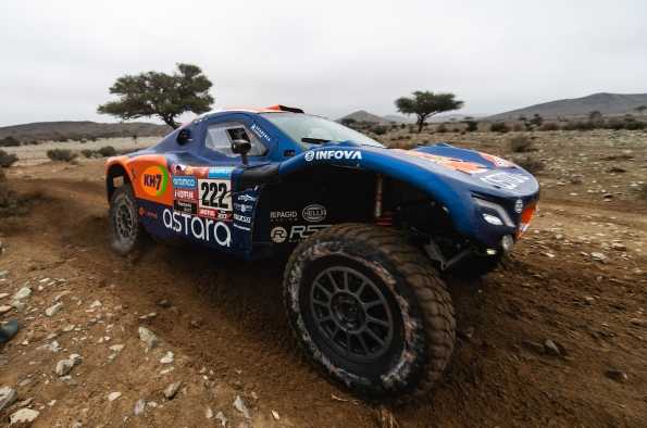 Tras pasar la noche en tienda de campaña por la semi-maratón de ayer, los participantes del rally Dakar se han tenido que enfrentar a un total de 824 kilómetros, de los cuales 346 corresponden a la especial del día. Mucha tierra y arena, algunos charcos por la lluvia y algunas dunas han sido los obstáculos que han tenido que superar los ASTARA 01 alimentado por e-fuel con la única asistencia de dos horas que ayer pudieron recibir por parte de los mecánicos del ASTARA TEAM.
