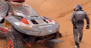 El RS Q e-tron E2 que maneja el madrileño, al que lograron darle la vuelta, salió malparado de la maniobra, pero el triple campeón del Dakar pretendía esperar a que llegara su asistencia para tratar de reanudar la carrera.