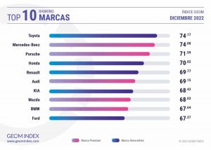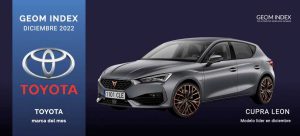En diciembre esta consultora española especializada en el big data del entorno de la industria de la automoción ha procesado un total de 105.564 textos. Una recopilación de noticias y opiniones que, tras ser analizadas por una serie de herramientas basadas en la inteligencia artificial que valoran tanto la opinión y los comentarios de los usuarios como la notoriedad que alcanza las propias marcas y modelos en la red. De esta manera, el último estudio GEOM Index de 2022 ha otorgado una valoración total de 74,17 puntos a Toyota y de 74,53 puntos al Cupra León, para situar a ambos en lo más destacado del entorno de la comunicación digital.