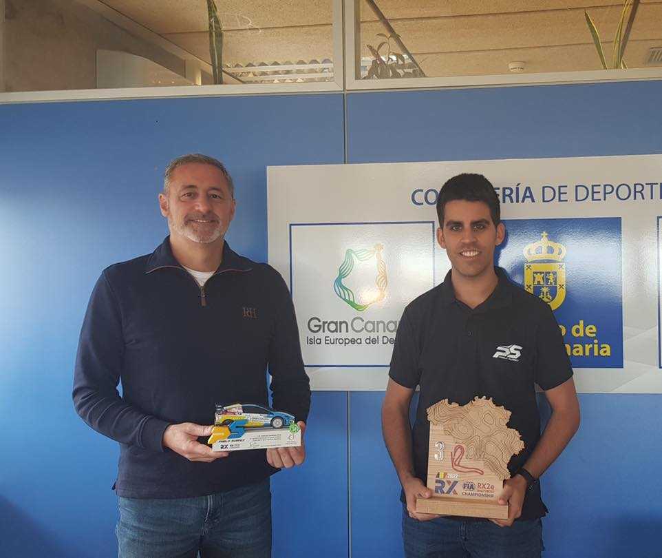 El consejero de Deportes del Cabildo de Gran Canaria, Francisco Castellano, ha recibido en la mañana de este lunes al piloto grancanario Pablo Suárez, quien le ha mostrado muestra el trofeo del tercer puesto logrado en la temporada 2022 en la carrera de Spa-Francorchamps, puntuable para el campeonato FIA RX2e de rallycross 100% eléctrico.