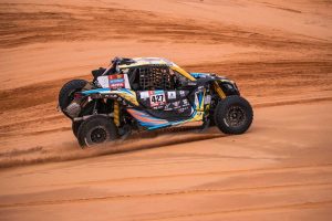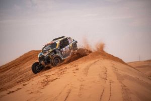 La jornada comenzó con una gran alegría para Peñate y Romero, ya que tuvieron la oportunidad de disfrutar de una espectacular etapa en dunas, donde pudieron conducir con fluidez y velocidad. Sin embargo, en el kilómetro 100, el coche de la expedición sufrió un fallo eléctrico repentino que provocó la parada del vehículo, teniendo que invertir tiempo en identificar el problema, que resultó ser un relé defectuoso, y repararlo para poder continuar la carrera.
