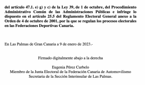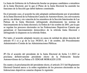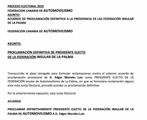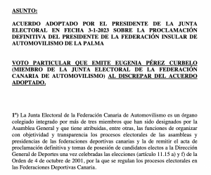 Publicamos el nuevo voto particular realizado por Eugenia Pérez por el nombramiento de Edgar Morales como presidente de la Federación Insular de Automovilismo de La Palma.