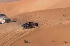 Carlos Checa: “Hoy vuelve la sonrisa y teníamos ganas después de los problemas que tuvimos ayer, que nos hizo perder mucho tiempo, pero pudimos terminar la etapa gracias al trabajo del equipo Astara y a los mecánicos que han trabajado toda la noche. Al principio volvieron a fallar los sensores de la presión, pero se han estabilizado. Y luego el coche ha ido muy bien. Hoy tanto para Marc como para mí teníamos un gran reto, que era afrontar las dunas, nos hemos encontrado con unas dunas increíbles, nunca había visto unas dunas tan altas y en algunos puntos estaban muy blandas, era como una ratonera, llena de trampas. No nos hemos escapado de quedarnos atrapados alguna vez pero al final, una satisfacción enorme de haberlas cruzado. Hemos perdido poco tiempo y lo más importante es que hemos llegado con el coche entero. Mañana tenemos otra etapa, la maratón, y nos toca hacer algo de mecánica”.
