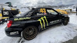 Una colección de coches de rallyes de Block se alinearon en la entrada de la estación de esquí de Woodward Park City, donde los actos comenzaron a la 1:43 de la tarde.