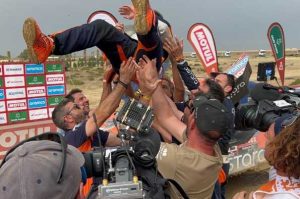Carlos Checa: “Muy contentos de haber completado el Dakar. No ha sido nada fácil porque nos ha pasado de todo pero hay que dar gracias al equipo SMC, a ASTARA por haber confiado en este proyecto y llevarlo a cabo, yo lo he disfrutado muchísimo pero también lo hemos sufrido un poco. Tener a Marc a mi lado ha sido un soporte importante. Hoy hemos disfrutado muchísimo la etapa, hemos corrido como diablos, Marc me hacía frenar un poco pero hoy era el día de pasarlo bien y al final ha sido una súper etapa. Terminamos con un muy buen sabor de boca, por todo lo que ha ido sucediendo en cada una de las etapas, tendremos tiempo de repasarlo, recordarlo, porque han sido vivencias muy intensas. Personalmente ha sido una gran experiencia, de haber conocido a un copiloto y haber encontrado a un amigo”.