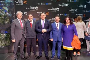 El alcalde de Arona, José Julián Mena, y los concejales de Deportes, Francisco Marichal, Turismo Arona Tenerife, José Alberto Delgado, y Promoción Económica Arona, Raquel García, han estado en Madrid junto al presidente de la Escudería Zapatera Sport, José Rodríguez Campos, que ha presentado la XX Subida Arona-La Escalona, que tendrá lugar los días 24 y 25 de noviembre.