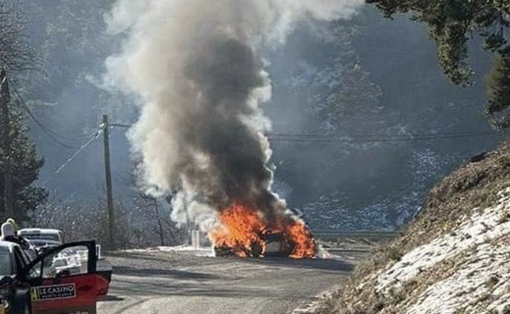 Mala suerte para los suizos Jonathan Hirschi y Michaël Volluz durante el Rally de Montecarlo al ver con impotencia cómo se quemaba su Volkswagen Polo GTI R5.