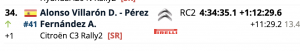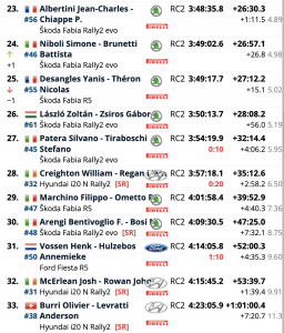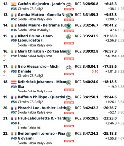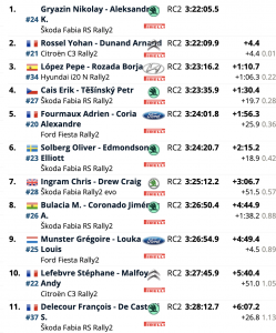 Con las adversidades climáticas típicas de la primera cita del Campeonato del Mundo de Rallys, los del Teo Martin Motorsport poco pudieron hacer ante el mayor empuje de los ganadores Nikolay Gryaziny Konstantin Aleksandrov (Škoda Fabia RS Rally2), que lograron superar en 4.4 a los segundos clasificados, Yohan Rossel y Arnaud Dunand (Citroën C3 Rally2), mientras que los españoles se quedaban a 1:10.7 del liderato de la categoría.
