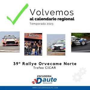 La 39ª edición del Rallye Orvecame Norte – Trofeo Cicar será la primera cita del Campeonato de Canarias 2023 de Rallyes de Asfalto, un regreso de justicia que nos alegra enormemente, puesto que se reconoce así el prestigio y la importancia de nuestra prueba, así como el trabajo y la repercusión deportiva de la misma en el motor canario.