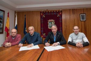 Miguel Reyes, concejal de Deportes del Ayuntamiento de San Mateo y Miguel Espino, coordinador de Seguridad del 47 Rally Islas Canarias, acompañaron a Antonio Ortega y Germán Morales en la firma del acuerdo.