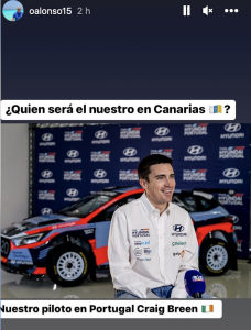 Con una imagen del irlandés Craig Breen en su instagram, que este año compartirá un Hyundai i20 N Rally1 con el español Dani Sordo en el Campeonato del Mundo de Rallys y que recientemente ha sido confirmado como piloto de Team Hyundai Portugal en el Campeonato de Portugal de Rallys a los mandos de un i20 N Rally2, se pregunta: ¿Quién será el nuestro en Canarias? Todo apunta a que será el propio Breen, pero si ni fuera la opción Sordo no sería descartable, siendo aún más atractiva. Veremos cuándo lo desvelarán y quién será.