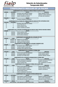Adjuntamos la relación galardonados de los Campeonatos FIALP 2022 que se entregarán en la Gala de Campeones a celebrar el viernes 10 de febrero a las 20:00 horas en El Paso.